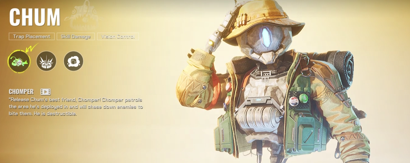 Meet Chum, a sentient, stone-carved robot with a unique fascination for organic life, particularly fish. Accompanied by his best friend, Chomper, a stone fish he crafted himself, Chum disrupts enemy formations by transforming Chomper into explosives or smoke bombs, bringing a whole new dynamic to the battlefield.