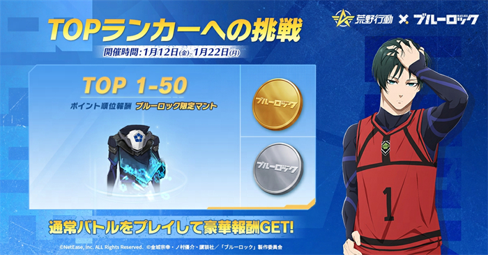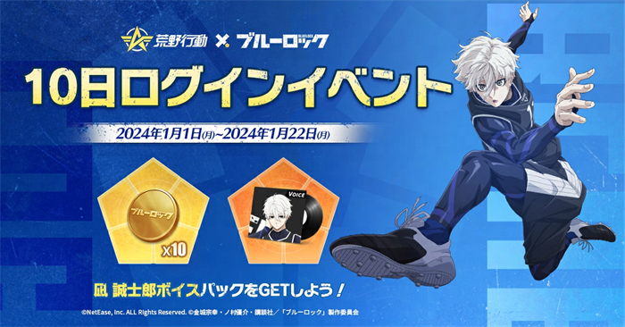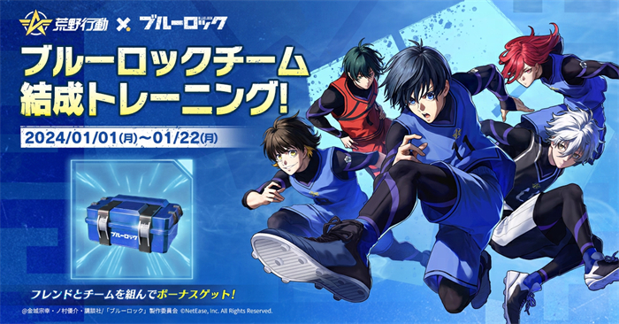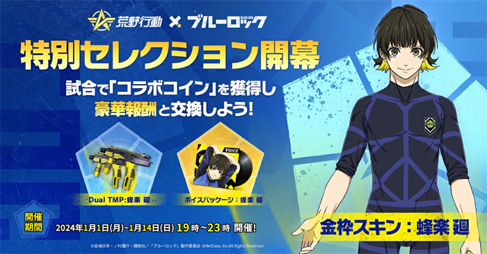 NetEase Gamesが開発・運営する大人気バトルロワイヤルゲーム『荒野行動』にて、2024年1月1日から1月22日までの期間中、TVアニメ『ブルーロック』とのコラボイベントを開催いたします。
